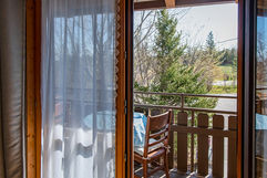 Room 4 is a spacious retreat featuring a queen-sized bed, a comfortable seating area, and doors that open onto a private balcony. The balcony, complete with a table for two, offers views of the front of the property and stunning sunrises. We want you to sleep your best sleep, our beds are firm and comfortable, however for those who prefer a softer bed, we have mattress toppers available upon request, just let us know!